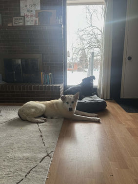 Overall Skipper is a very calm and well mannered dog, with some old soul in her. Once she feels safe and trusts you she easily relaxes and makes herself at home. She loves to be close to her humans, lounging in the sun and watching the birds and people pass out the window. She doesn’t bark, just watches.