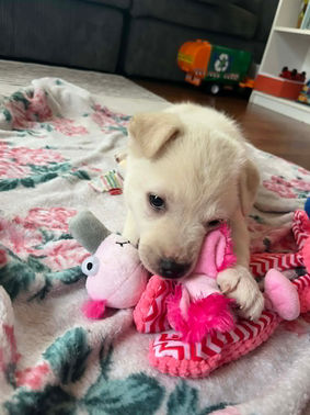 This spunky, playful, snuggly sweet girl is looking for her forever home! She is seriously sweet as SUGAR, a great mix of playful and snuggly. Loves to play in the snow. She is great with cats (playful but respects their space). Great with kids, and other pups! She loves to follow you around the house and be by your side, once she tuckers out she’s ready for a good snuggle but will also snuggle in her kennel all by herself. She’s pretty quiet only whines and lets out the odd bark when she is locked in her kennel, although she will settle down fairly quick. We are currently working on potty training, she knows exactly what to do outside, very good at going outside just working on giving us cues it’s time to go. She does have the odd accident in the house (always on a pee pad) but she is doing amazing outside. The key to this girls heart is affection, play and lots of love. Very loyal and she will definitely be your little shadow. If you’re looking for a sweet addition to your family, this curious and loving, Sugar is bound to be your sweet cup of tea